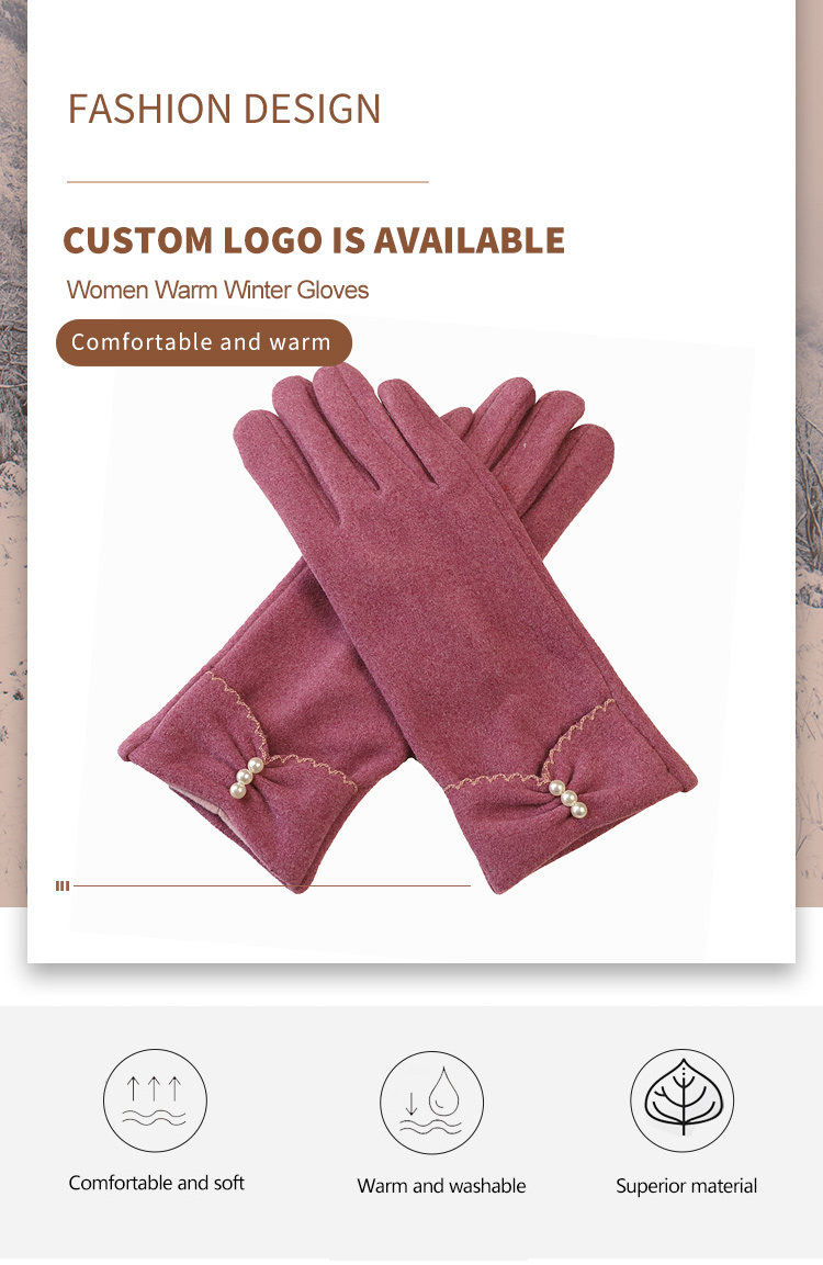 Ladies Warm Windproof Gloves Elegant Peral Mittens Female Fashion Women Images |